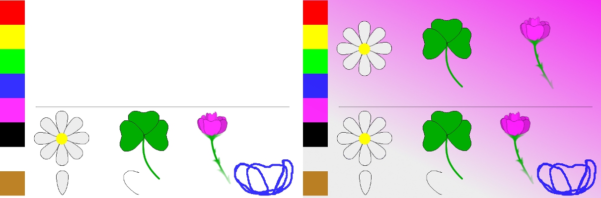 Realizar un dibujo sencillo y aplicar el filtro de animación ![]() Cortar, girar y añadir texto ![]() Seleccionar, copiar, girar, voltear, escalar los elementos sencillos para crear las flores ![]() Crear los siguientes dibujos o parecidos utilizando las herramientas de transformación ![]() Modificaciones de color sobre la imagen original (arriba, izquierda) Seleccionar un color y modificar el resto de la imagen ![]() ![]() Corregir los defectos de una foto deteriorada Combina dos imágenes para crear una nueva ![]() ![]() Trabaja sobre varias capas para crear tus propias animaciones _____________ ![]() _____________ ![]() ___________ ![]() _____________ ![]() |